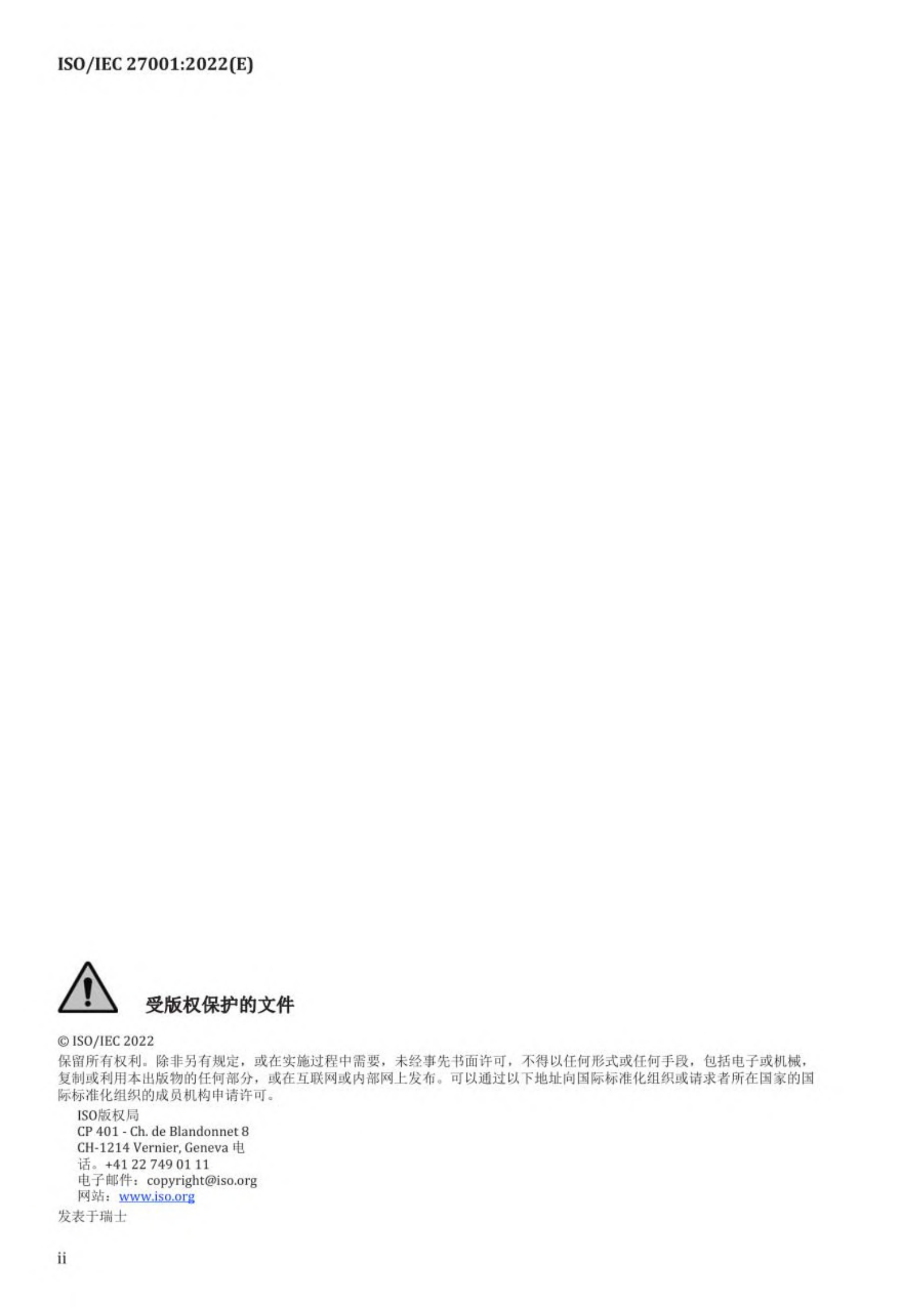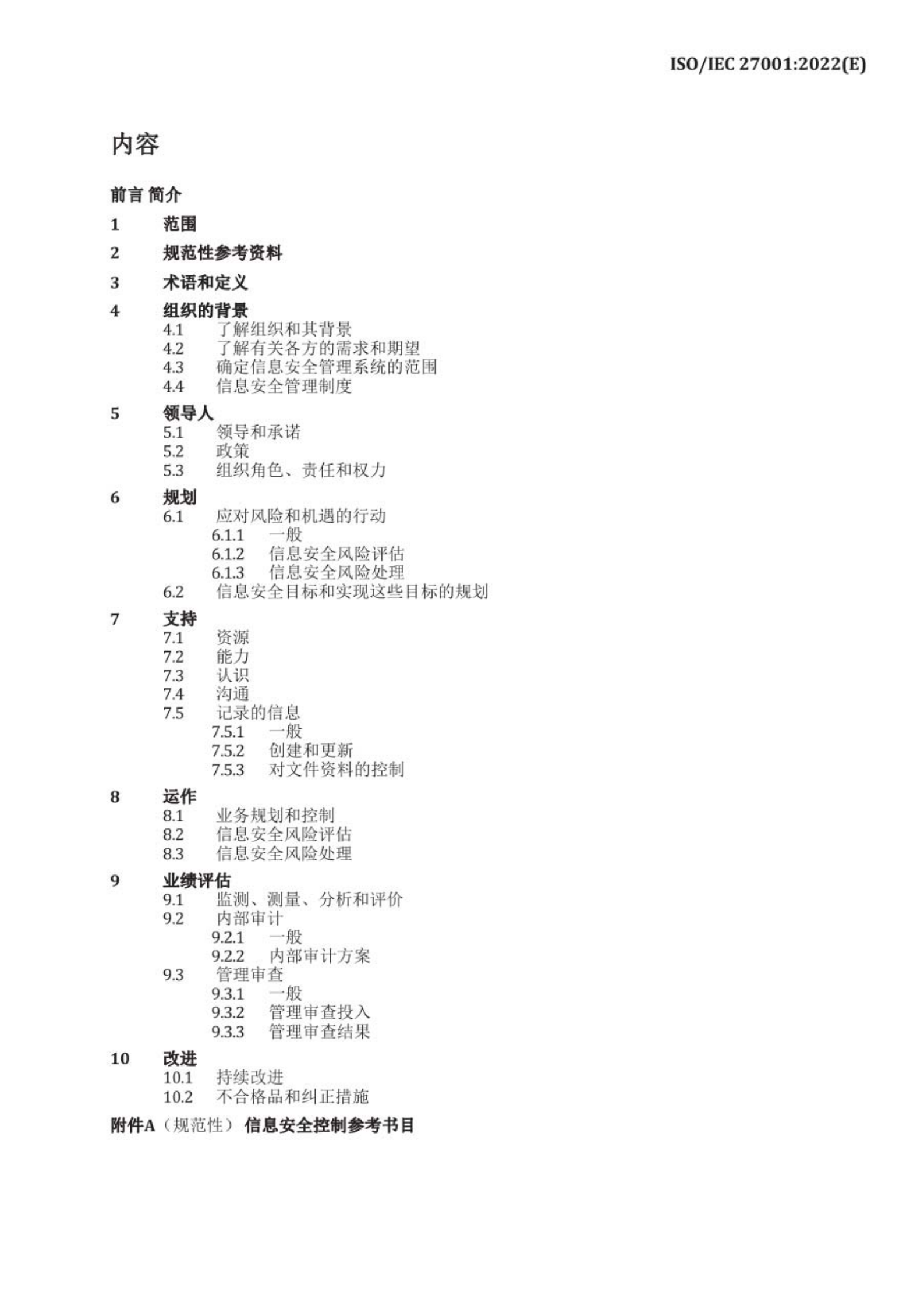 已公示ISO/IEC 27001:2022《信息安全 网络安全 隐私保护 信息安全管理体系 要求 》封面及目录,若需获取全文可通过以下途径获取: