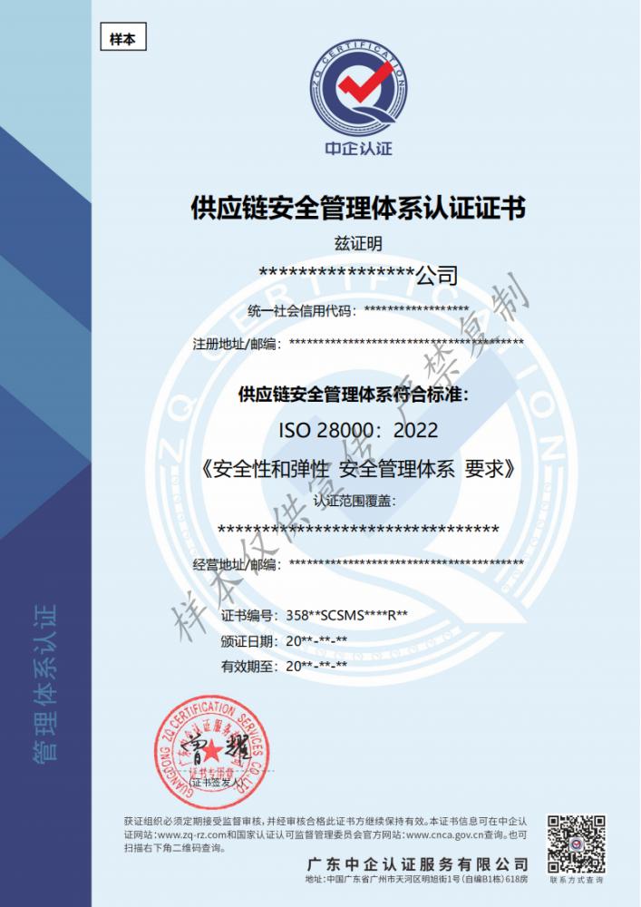 为应对运输和物流行业对共同安全问题的需求,帮助企业/组织构建有效的供应链安全管理系统,改进供应链的全面安全,国际标准化组织(ISO)组织制订了ISO 28000供应链安全管理体系。作为新的管理体系规范,它..为操作或依赖供应链中某一环节的组织提供了框架。它能帮助行业各部门审核安全风险并实施控制和减轻风险的安排来管理供应链潜在的安全威胁和影响。