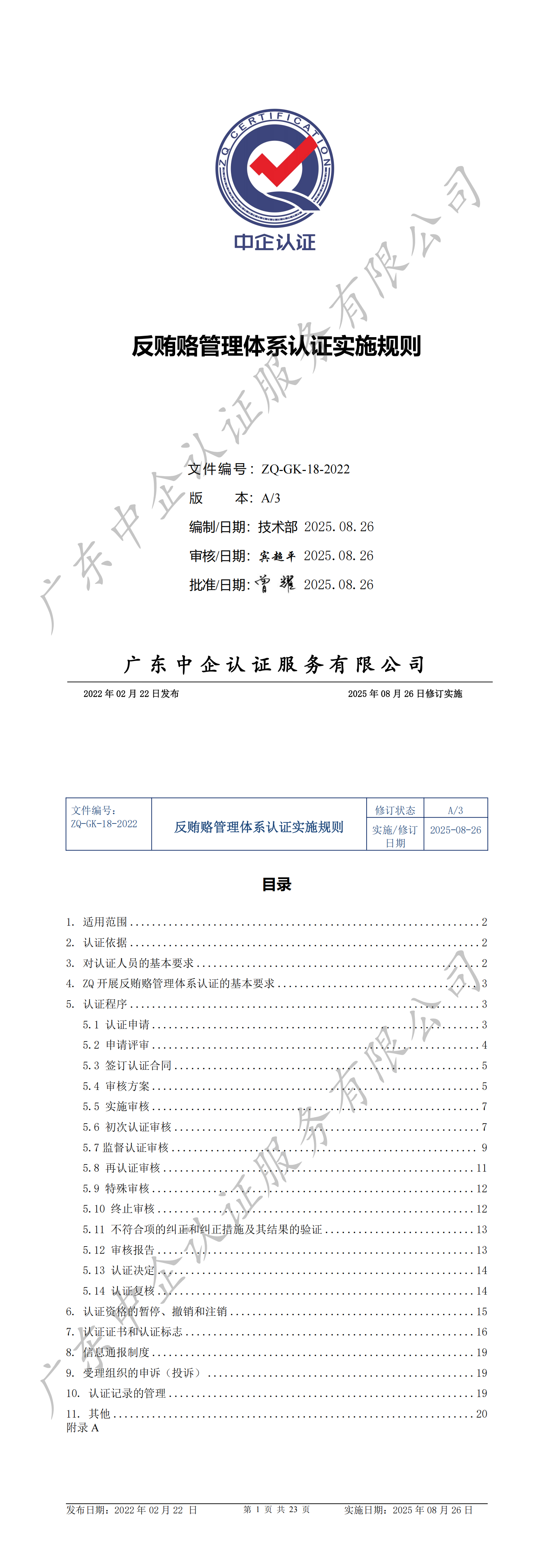 已公示反贿赂管理体系认证实施规则封面及目录,若需获取全文可通过以下途径获取: